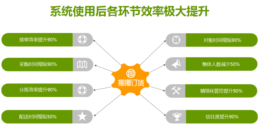 2.高效接單:商城快捷自助下單、后臺高效接單錄單、業務員移動端隨時隨地代客下單、商家移動端代客下單、商戶語音下單、再來一單等多種方式、四大入口隨時隨地高效接單。